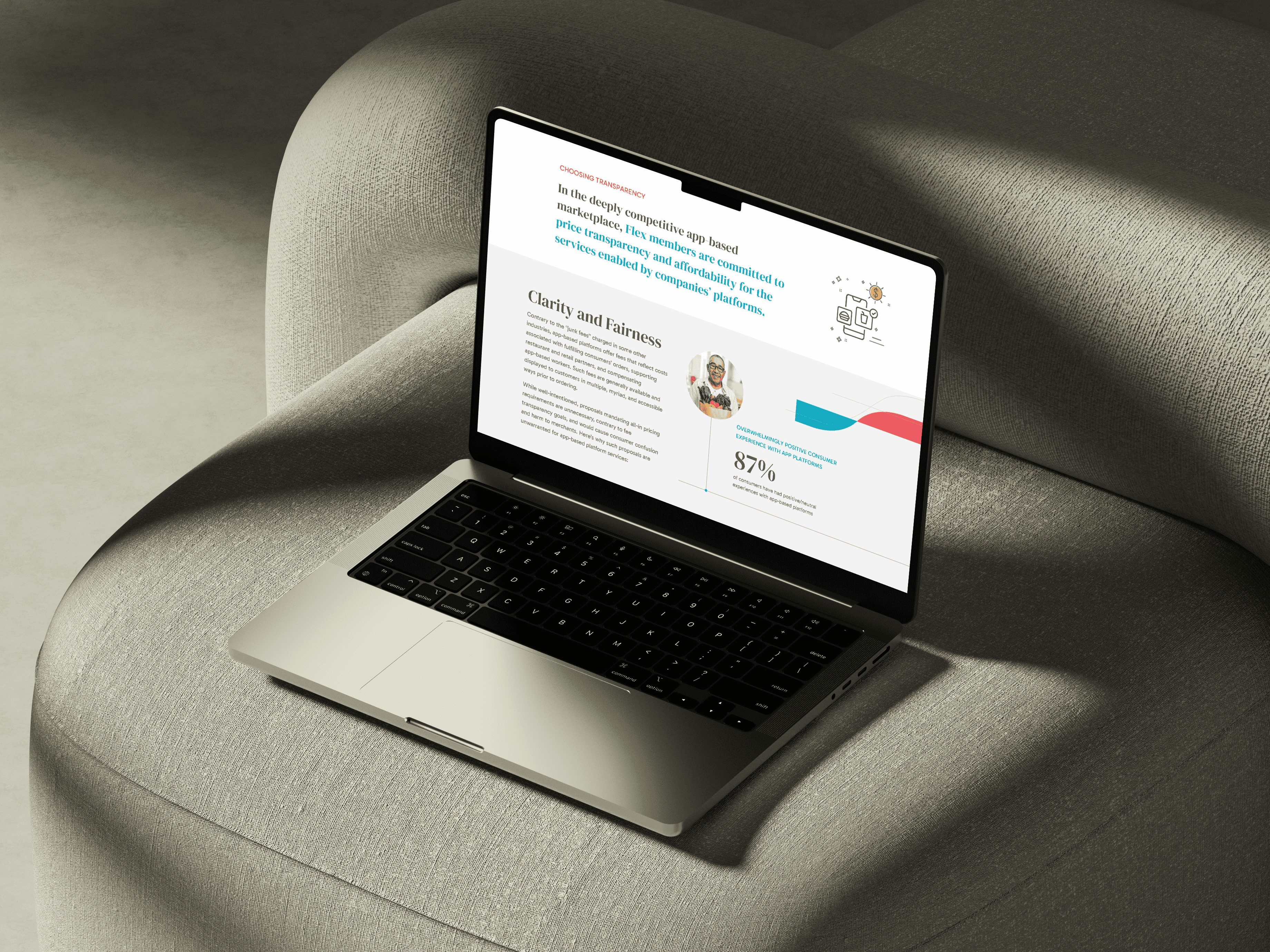 Rebranded a gig economy advocacy organization to reflect the app-driven workforce landscape. Led end-to-end website redesign from wireframes through developer collaboration, plus print collateral. Dynamic shapes and bold colors reinforce FLEX's mission to advocate for workers on platforms like Uber and Grubhub.
